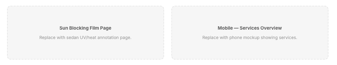 Managing visuals across the full site required more than a folder of photos. I designed a digital asset taxonomy categorized by service type, vehicle model, and tint shade. This structure allowed the engineering team to programmatically map the correct visuals to specific service parameters, so every page displayed accurate, relevant imagery without manual placement.