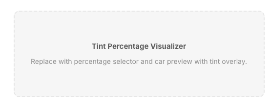 The simpler option was better photography with percentage labels. But the research showed something specific: customers didn't just want to see examples, they fundamentally misunderstood what the percentages meant. They assumed 20% meant 20% darkness applied. In reality, it means the film only lets 20% of light through, which is quite dark. A label saying "20% tint" next to a photo wouldn't fix that misunderstanding. The interactive tool let customers move between percentages and see the change happen on a car image, correcting the mental model in a way static images couldn't. It was built as a lightweight overlay on static images rather than a JavaScript-heavy application, so the page stayed fast and crawlable.
