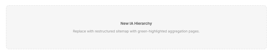 The restructuring had to satisfy both audiences. For customers, the new taxonomy organized services by intent. For Google, every existing URL kept its ranking value. The solution was aggregation landing pages that sat above the existing deep pages, giving customers clear entry points without deleting or redirecting the content Google was already rewarding. The old pages stayed in the index. The new pages gave humans a way to find them.